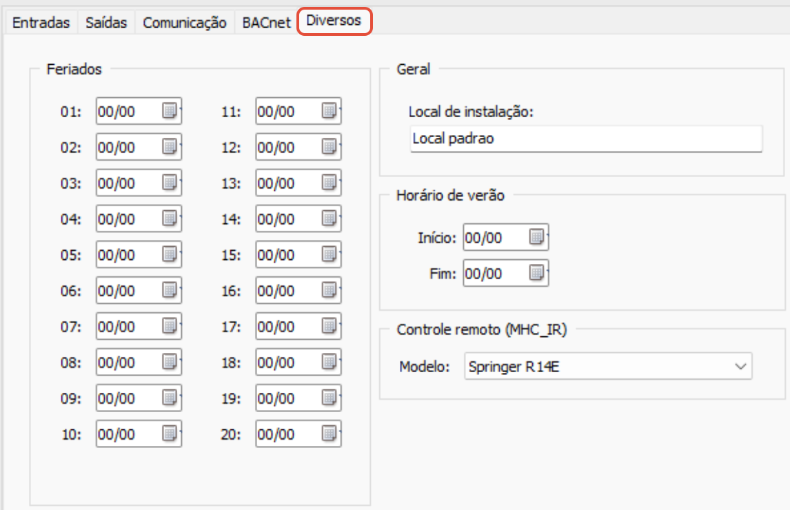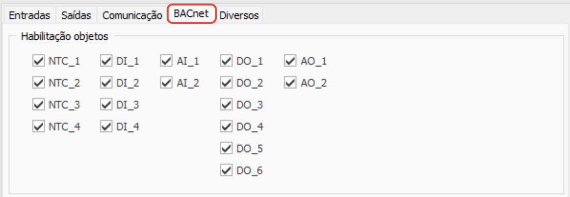 Habilitação dos objetos: Selecciona las entradas y salidas habilitadas en la red BACnet.
