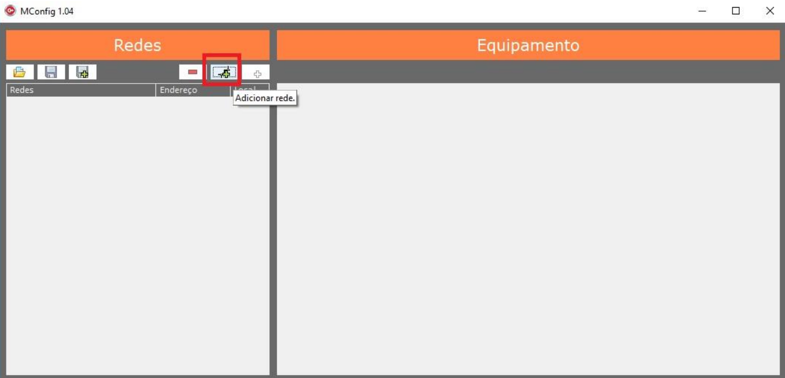 1. Agregar la red: Para iniciar la configuración desde MConfig es necesario agregar una red. Haz clic en el ícono resaltado en rojo en la imagen a continuación.