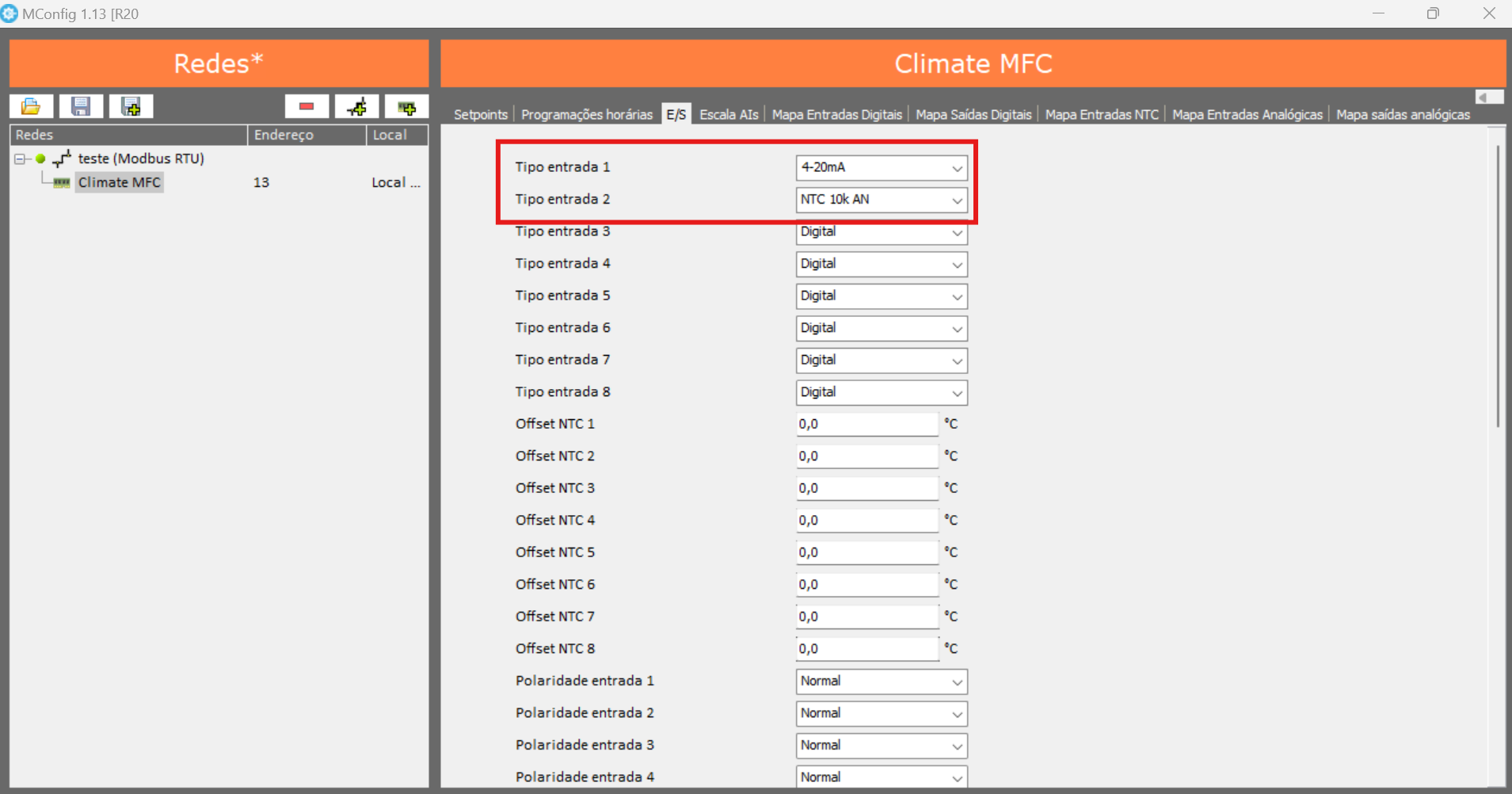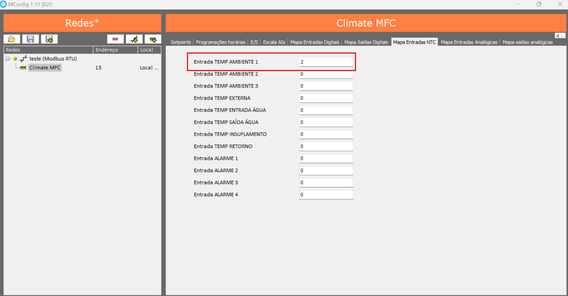 10. Mapear la entrada de temperatura: En la pestaña "Mapa Entradas NTC", selecciona el número de la entrada donde está conectado el sensor de temperatura.