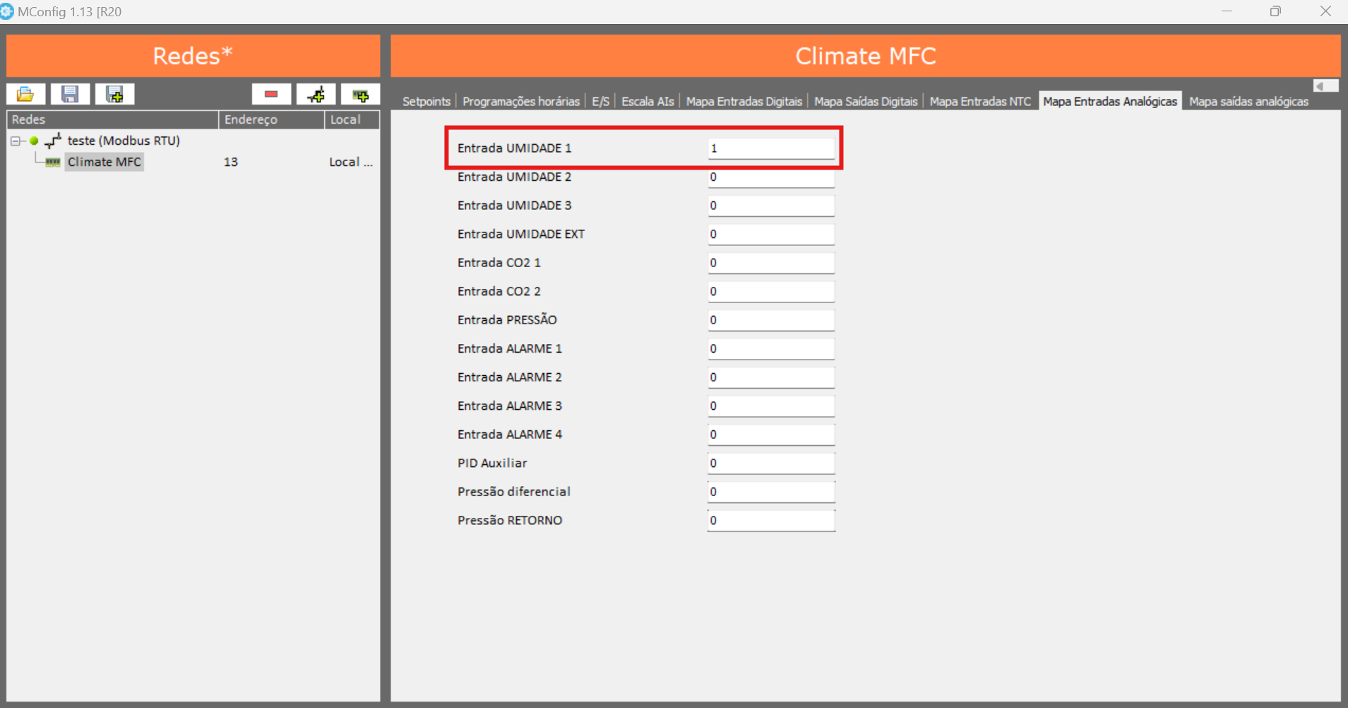 9. Mapear la entrada de humedad: En la pestaña "Mapa Entradas Analógicas", selecciona el número de la entrada donde está conectado el sensor de humedad.