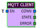 El bloque CLIENT es responsable de gestionar la conexión del controlador con el servidor MQTT (broker). Solo puede existir una única instancia de este bloque en el programa.