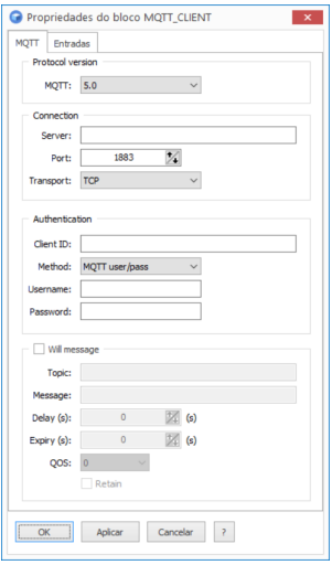 En las propiedades del bloque es necesaria la configuración de los parámetros para la publicación en el broker MQTT.