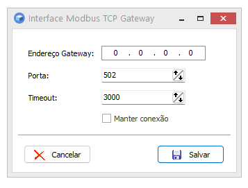 • Parâmetros da interface Modbus TCP Gateway